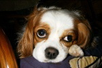 | わが家の愚犬(^w^) キャバリア・キング・チャールズ・スパニエル 名前は あすか です。 今年で11歳になりました。小さいころから 目が大きく、ちょっと離れてます。愛嬌はあるんですけどね。 |