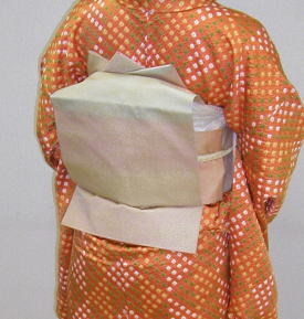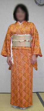| はじめに。 2001年に習い始めた着付け教室。 きっかけは、新聞の掲載を見て葉書を出したのが事の初め。 そうなんです、そうなんですが これには多少のエピソードが。。。 ある日帰宅すると、着付け教室から曜日と時間を指定した葉書が来ておりました。 なんだろかと読んでいるうち、父がやってきて、 「おー 当たったか。」 「出しといたんだ、はがき。」 私 「・・・・・。」 てな具合で、通い始めました。 習い初めて思ったことは、まるで柔軟体操(ー_ーゞ 背中に手を回しての動作は、どっちが右でどっちが左で、 なんてわからなくなります。 それでなくても普段から間違えやすい私なのに。。。。。。 そんなこんなではじめのうちは大変でしたが、何度か習ううちとても楽しく 普段でも着てみたくなり、用事もないのに着物着て出掛けたりしちゃいます。 まず第一弾は なんとか見れる写真から。 |